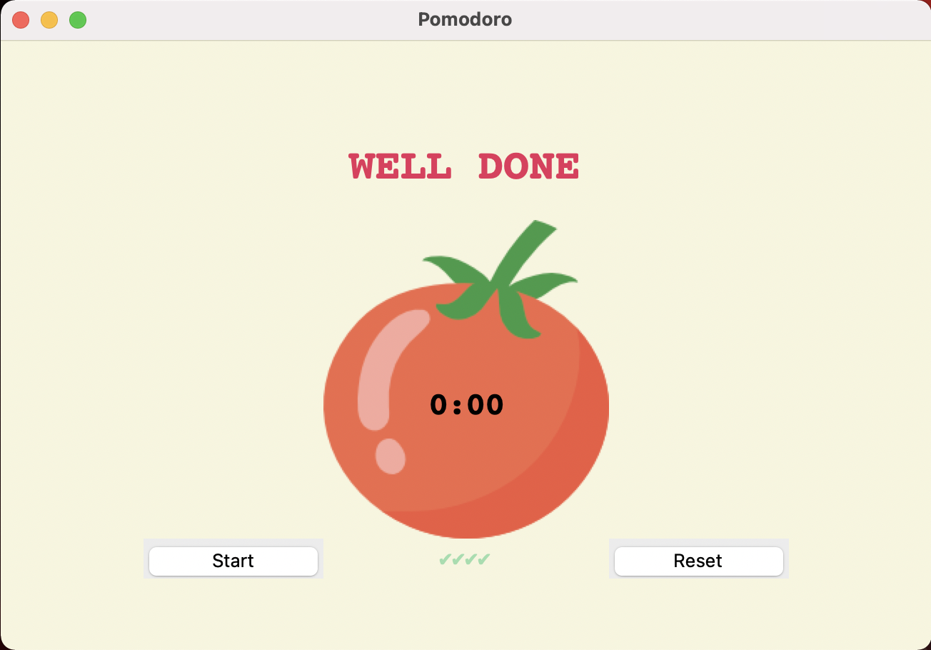 - After 4 reps of work and break then you will be greeted with well done message on the screen.